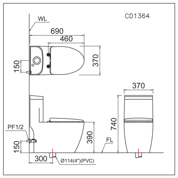 TP.HCM - Hotline: 0906.277.298 - 0939470296. Bàn Cầu Một Khối - CD1364, chính hãng Caesar. Vui lòng liên hệ trực tiếp để có giá tốt.