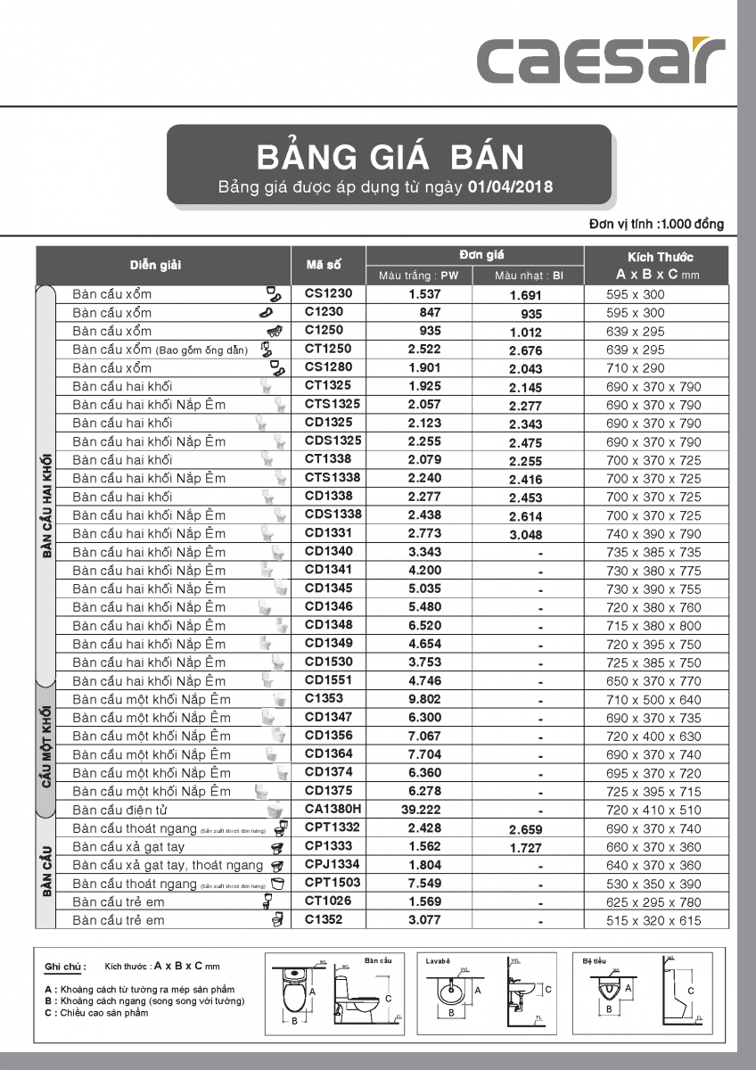 Bảng giá bàn cầu caesar 2023, Quý Khách vui lòng liên hệ trực tiếp để có giá tốt nhất.