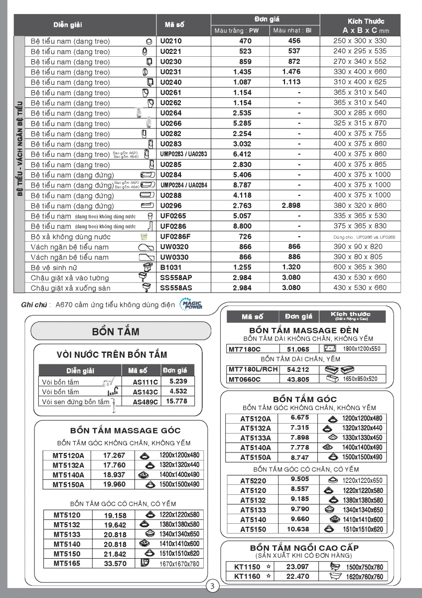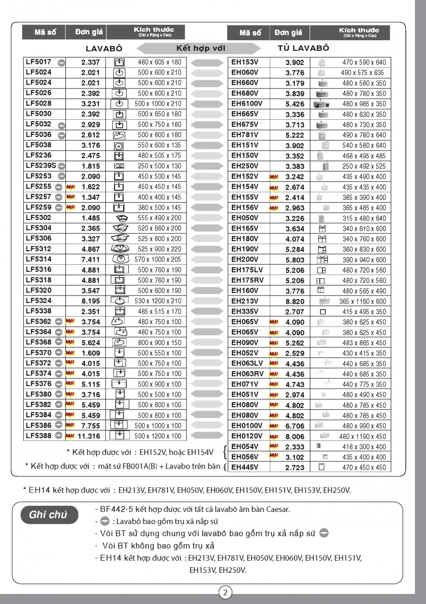 BẢNG GIÁ BÀN CẦU CAESAR 2023 (Tháng 06/2023)