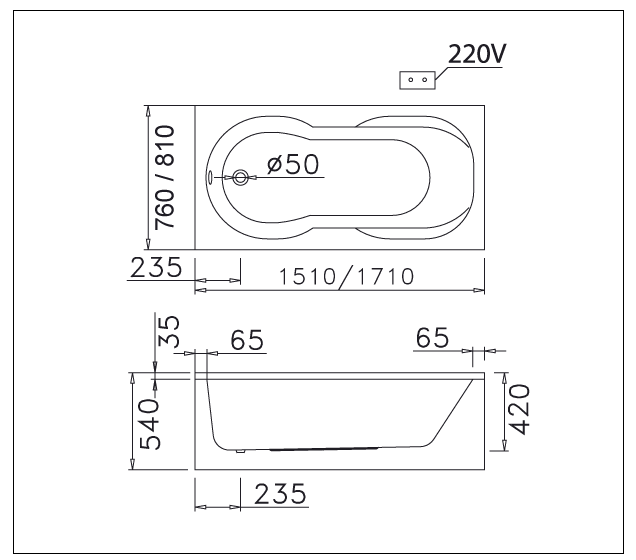 - Kích thước: 1710 x 810 x 570 mm