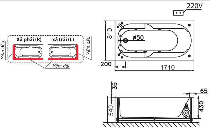 | MT0270L(R) | 18.845.000đ | 13.666.000đ | Bồn tắm massage chân yếm |