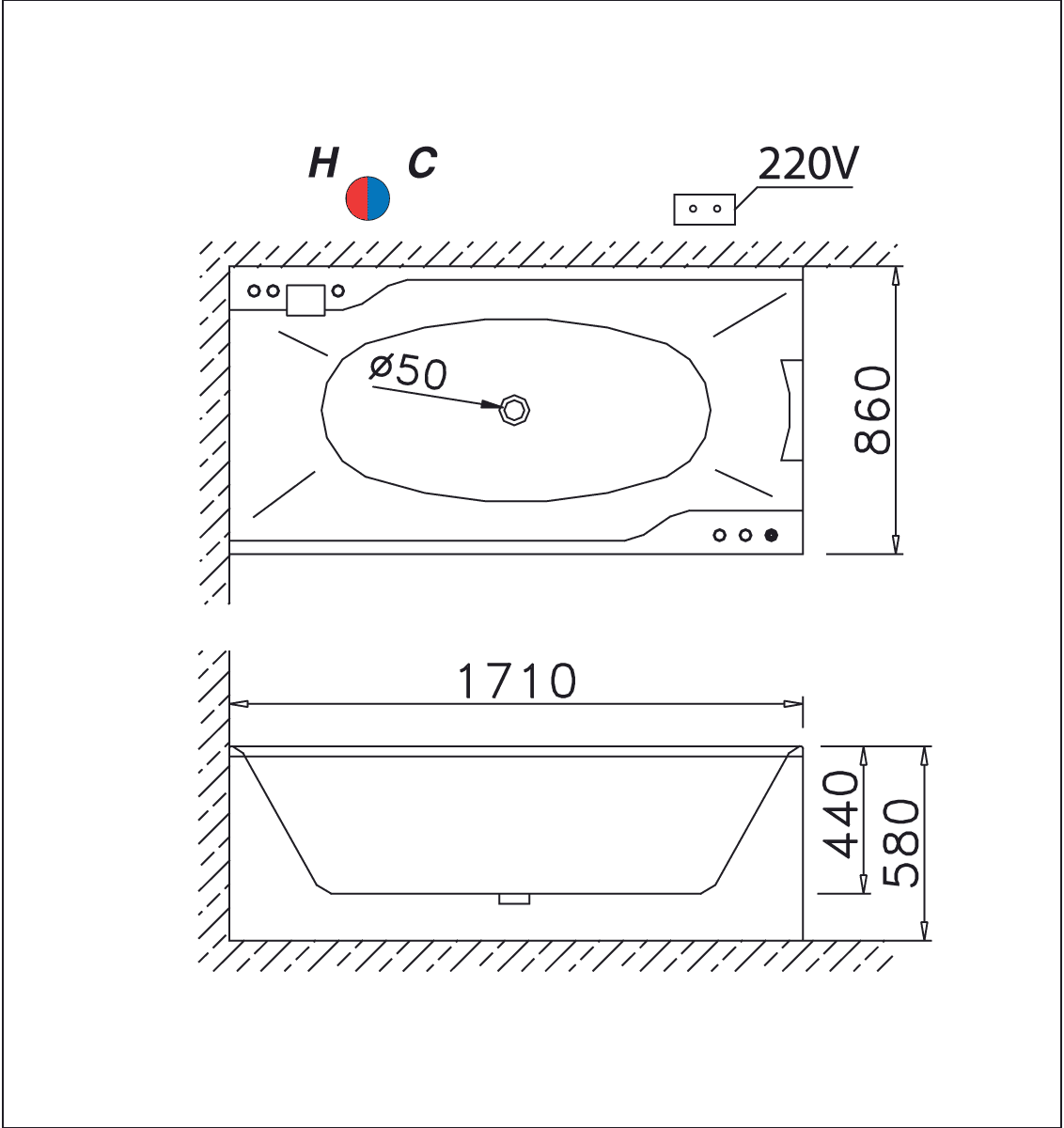 - Kích thước: 1710 x 860 x 580 mm