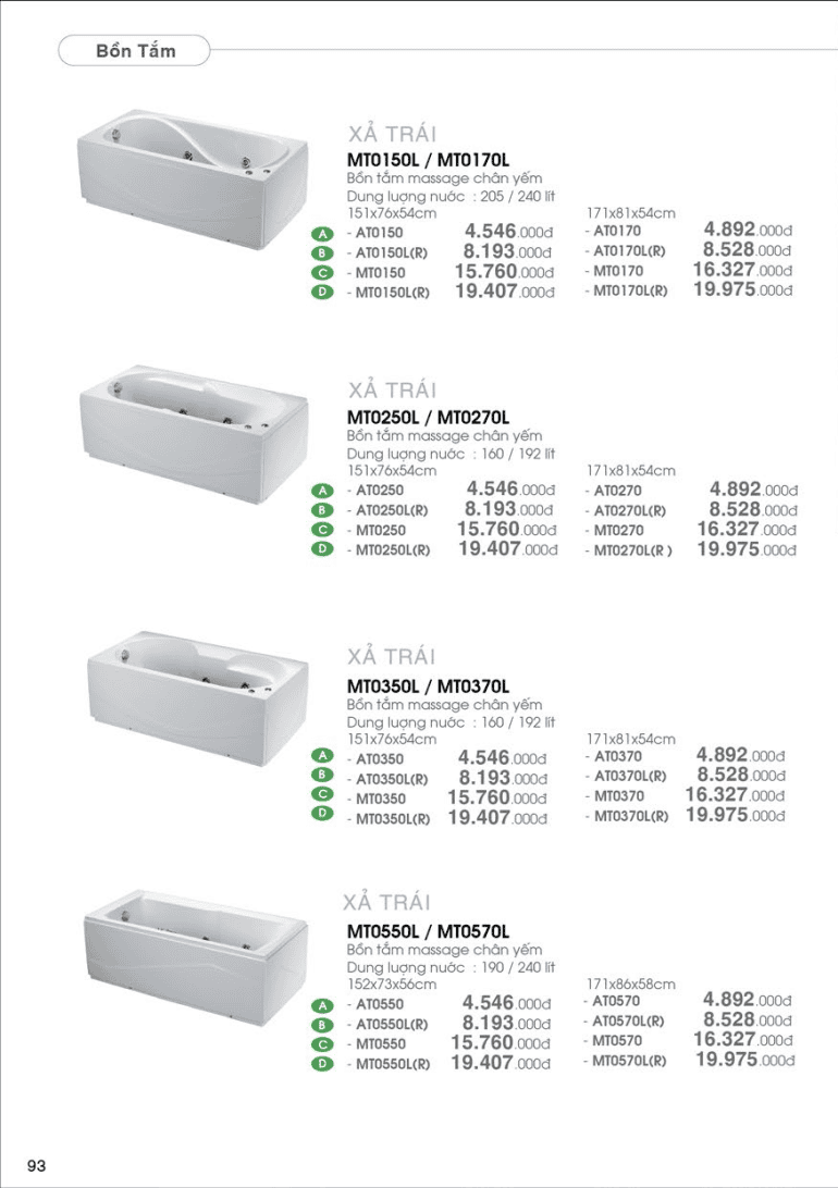 BẢNG GIÁ BÀN CẦU CAESAR 2023 (Tháng 06/2023)