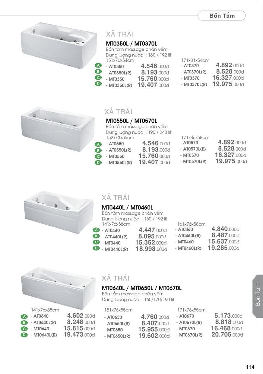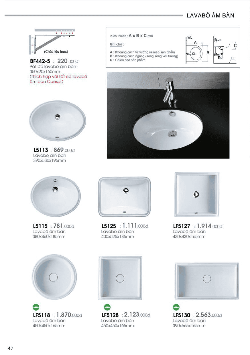BẢNG GIÁ BÀN CẦU CAESAR 2023 (Tháng 06/2023)