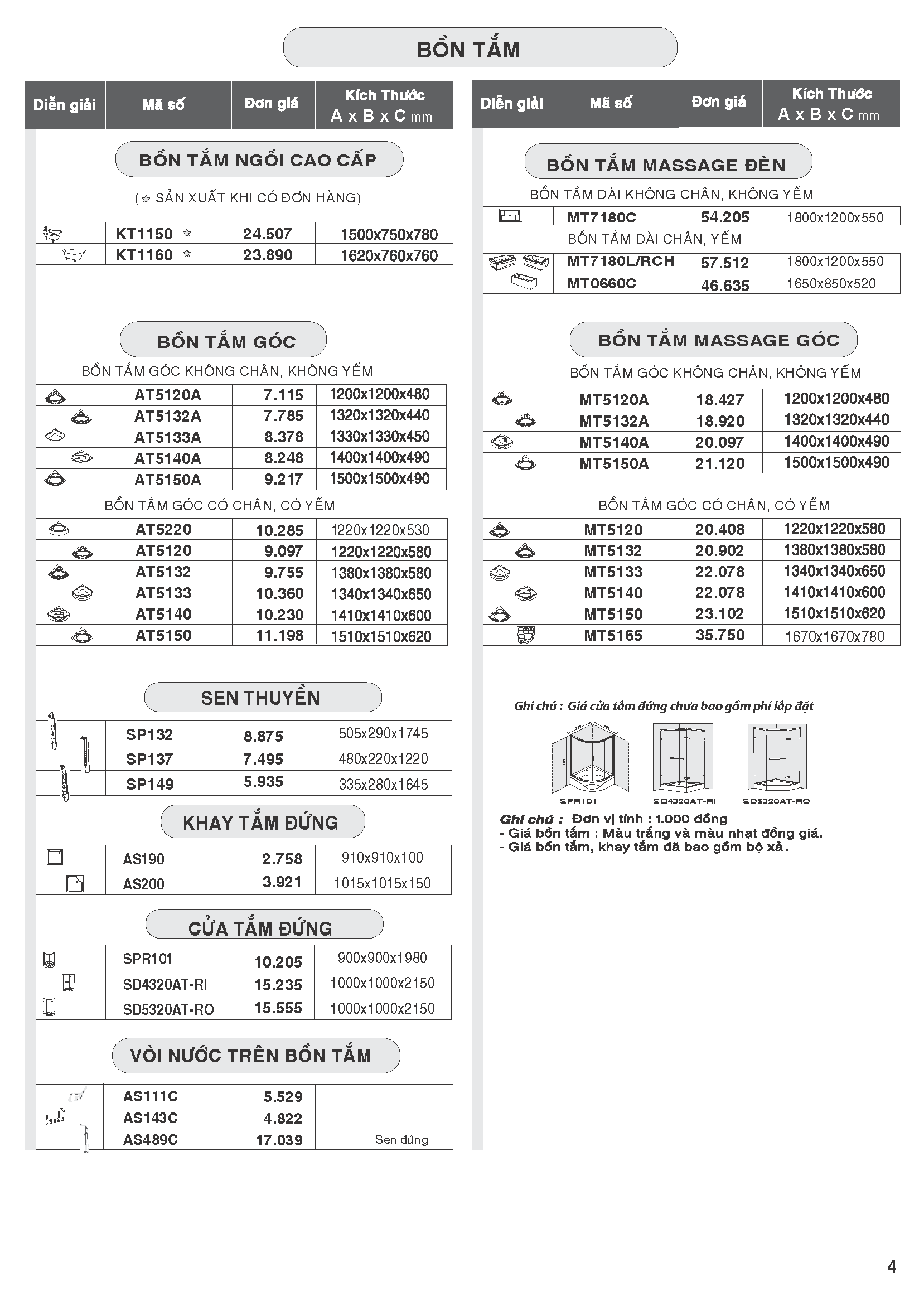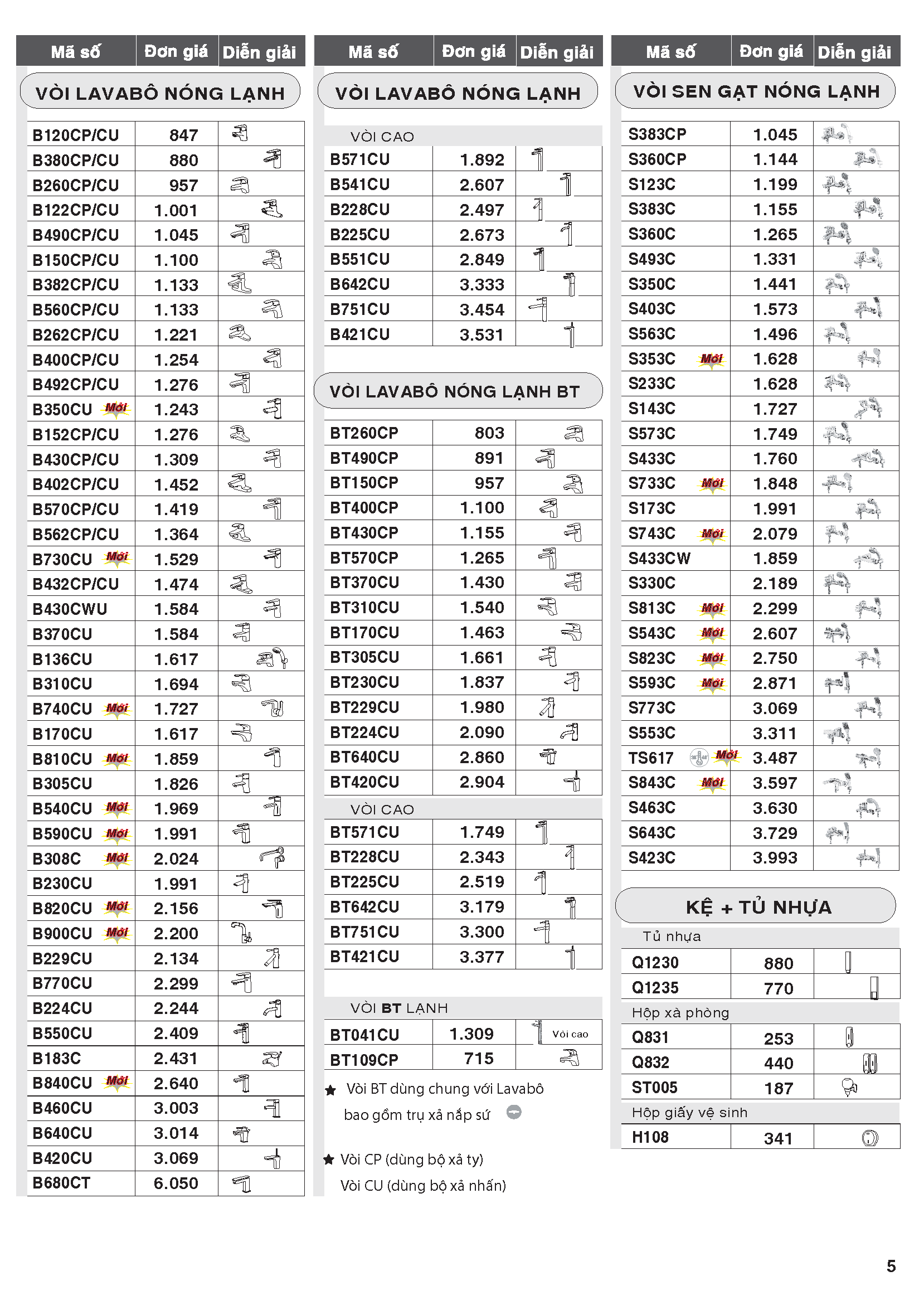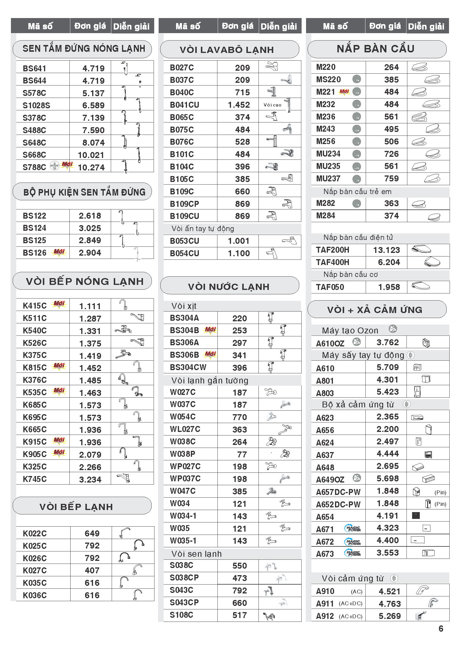 Bảng giá bán thiết bị vệ sinh Caesar 15-05-2020