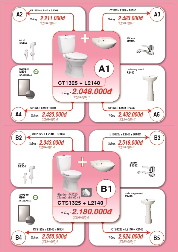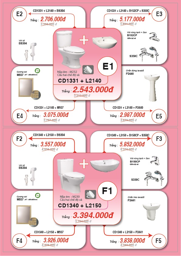 - Đặc biệt hơn, quý khách hàng mua cùng bộ bàn cầu + Lavabo quý khách sẽ được giảm giá từ 25% đến 35%. Còn nhiều hơn thế...